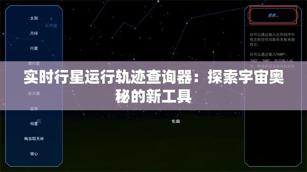 随着科技的不断发展,人类对于宇宙的探索欲望日益增强。天文观测设备越来越先进,人们对于行星运行轨迹的研究也愈发深入。为了方便广大天文爱好者以及科研人员实时了解行星的运行轨迹,一款名为“实时行星运行轨迹查询器”的应用应运而生。本文将详细介绍这款工具的功能、使用方法以及它如何助力我们探索宇宙的奥秘。