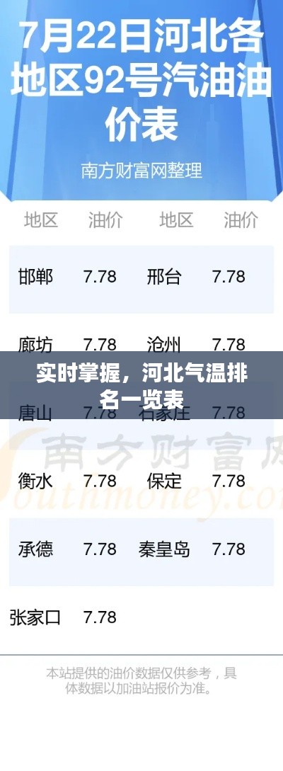 标题:实时掌握,河北气温排名一览表