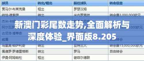 随着澳门特别行政区的博彩业不断发展与完善,澳门彩票市场的尾数走势分析成为了众多博彩爱好者和分析师关注的焦点。在这一背景下,“新澳门彩尾数走势,全面解析与深度体验_界面版8.205”政策文件应运而生,旨在为澳门彩票市场带来更明确的发展方向和更细致的监控。该文件将涵盖数据分析、政策解析和用户体验等多个方面,为澳门彩民提供更为个性化和精准的服务指南。