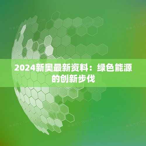 随着可持续发展理念不断深入人心,2024年的新奥正在以前所未有的速度推进绿色能源技术的创新。澳门作为国际经贸合作的重要桥梁,对绿色能源产业的布局和技术创新充满期待。值此重要时刻,我们引入最新的资料,揭示2024新奥绿色能源领域的创新步伐和发展趋势。