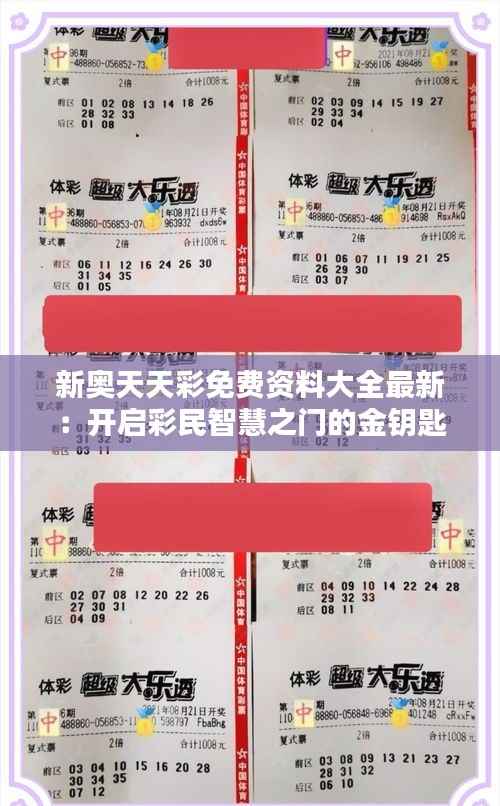 彩票一直是澳门地区的一大特色文化,随着时代的发展和信息技术的进步,彩票已经不仅仅局限于传统的实体店购买,越来越多的人开始通过互联网进行购彩。在众多的彩票品种中,“新奥天天彩”近年来逐渐崭露头角,成为了澳门乃至亚洲彩票市场上的一颗新星。本文旨在通过介绍“新奥天天彩免费资料大全最新:开启彩民智慧之门的金钥匙”,帮助广大彩民朋友更好地理解“新奥天天彩”,掌握资讯、技巧和规律,从而提高中奖率和收获更好的运势。