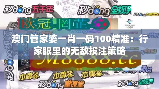 什么是“澳门管家婆一肖一码100精准”策略?这是一种结合统计学、概率论以及澳门博彩市场特点的一种投注模式。“管家婆”代表了策略的精细化管理,“一肖”指的是博彩中一种快速下注的方式,“一码”则是指精确到一个具体的号码或者结果。该策略强调的是量化分析和实时数据的快速反馈,以达到100%的精准投注效果。
