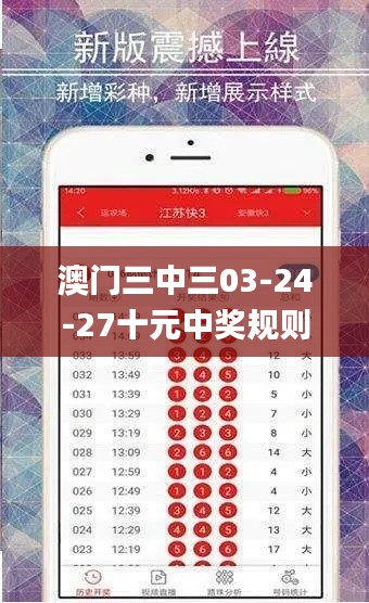 所谓的“澳门三中三03-24-27”是指澳门特有的彩票玩法,其中“三中三”是指玩家从1到27的数字中挑选3个,而“03-24-27”则是指在开奖时特别开设的三个号码区间带合规格(03-09, 10-16, 17-27),玩家必须在这3个区间内各选一个号码。为了配合“三中三”、“03-24-27”的特色设计,澳门彩票提供了十元计奖机制,即玩家投入十元参与游戏,一旦中奖则可能获取相应的奖金。