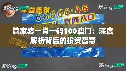 “管家婆一肖一码100澳门”这一独特的投资概念起源于对澳门特别行政区的投资市场深度理解和分析的结晶。它不仅仅是一组投资数字,更是一种对投资者行为、市场动态和投资机遇的洞察。在澳门特殊的经济和金融环境下,这一投资策略显得尤为合时宜。