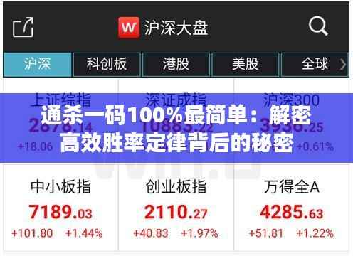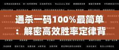 所谓的“通杀一码100%最简单”其实是一种误解。概率论中并不存在100%胜率的“一码”。这一表述更多地是形容在特定的游戏规则下,利用大数据分析和模型预测得出的最优策略。“高效胜率定律”则是这种策略的俗称,它要求我们通过精确的数据计算来寻找胜率最高的那一个“码”(也就是投注选项)进行下注。