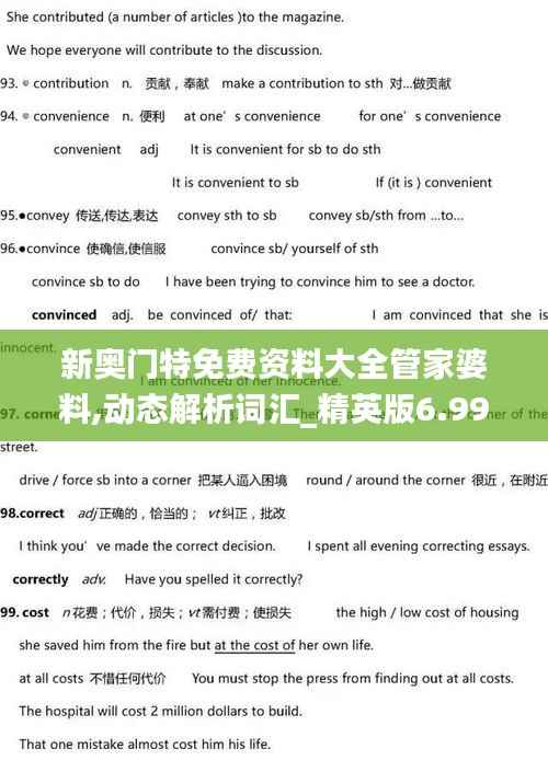 “新奥门特免费资料大全管家婆料,动态解析词汇_精英版6.999”可用于多种场景,包括但不限于:
