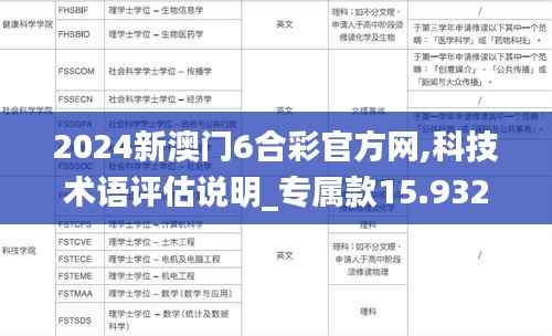 科技创新的快速发展促使新的科技术语不断涌现,而术语评估工作正是为了确保这些术语的准确性、一致性和普遍认可。“2024新澳门6合彩官方网”上的科技术语评估说明_专属款15.932板块致力于标准化这些术语,以促进技术知识的交流与传递。