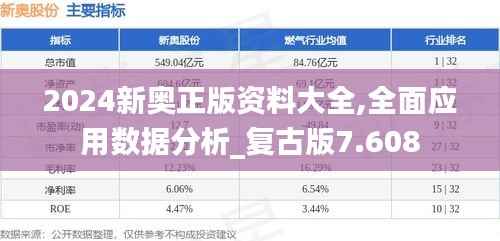 随着2024年全球政治、经济和社会格局的发展,澳门特别行政区政府在应对新挑战的同时,也在不断优化和增强政策制定与执行的有效性。其中,数据的全面应用已成为各领域不可或缺的核心工具。本文旨在介绍“2024新奥正版资料大全,全面应用数据分析_复古版7.608”,这一政策文件不仅为澳门的政策制定提供了丰富的数据支持,也为政策的实施提供了精准的数据分析服务。