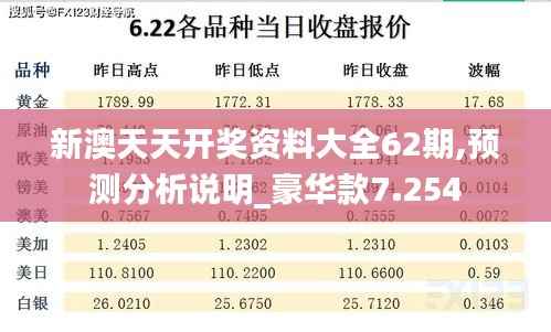 在众多彩票爱好者的热切期待下,澳门政策文件今天正式发布了《新澳天天开奖资料大全62期,预测分析说明_豪华款7.254》,这份细致的政策文件将为彩民提供全新的指引和预测分析。为了响应广大彩民的需求,我们特别编制了这份详细目录,公布62期的开奖资料,帮助大家更加精准地把握开奖规律和趋势。新澳天天开奖资料大全62期,预测分析说明_豪华款7.254将为澳门彩票市场带来新的动力,提高公众的彩票参与度和提高彩民的中奖率。
