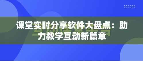 标题:课堂实时分享软件大盘点:助力教学互动新篇章