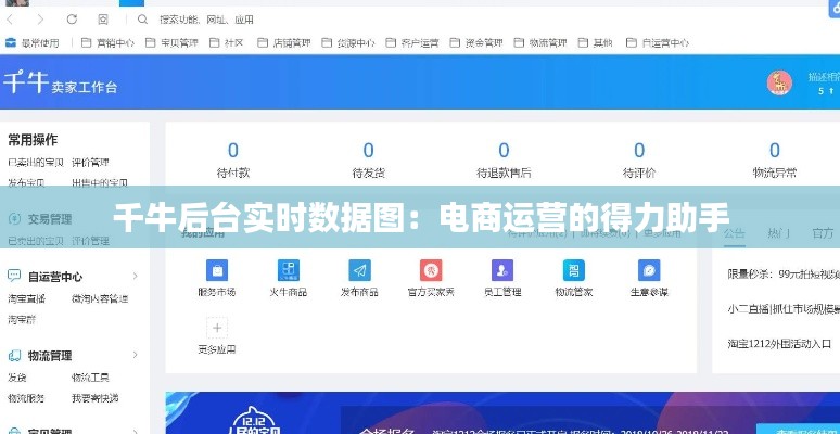 在电子商务蓬勃发展的今天,电商平台的后台数据对于商家来说至关重要。千牛作为淘宝、天猫等平台的官方卖家工具,其后台的实时数据图功能为商家提供了直观、实时的数据监控和分析工具。本文将深入探讨千牛后台实时数据图的功能、应用以及其对电商运营的重要性。