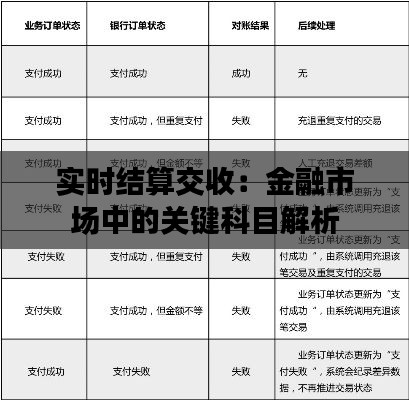 总结来说,实时结算交收是金融市场中的关键科目,它不仅关系到交易的即时性和安全性,还影响着市场的效率和稳定性。随着金融市场的不断发展,实时结算交收的重要性将愈发凸显。