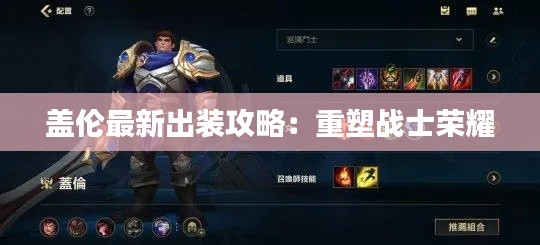 盖伦,这位来自德玛西亚的英勇战士,一直以来都是英雄联盟中的热门选择。他的高爆发伤害和出色的生存能力使他成为了许多玩家的首选。随着版本的更新,盖伦的出装也在不断演变。本文将为大家带来盖伦的最新出装攻略,助你重塑战士荣耀。